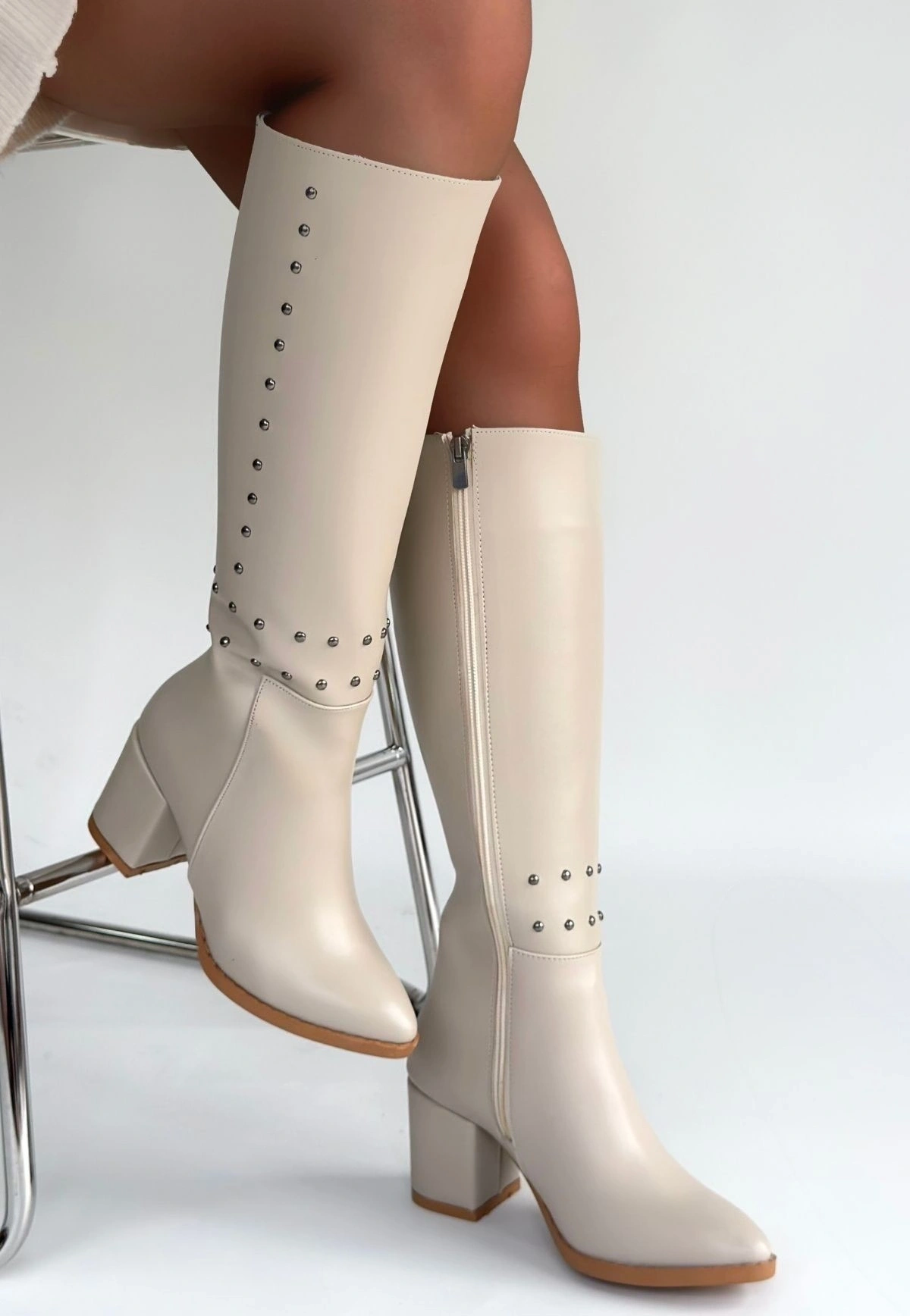 Detay: Topuklu Diz Altı Yandan Fermuarlı Çizme